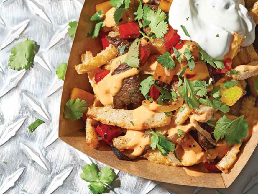 Ewg S Food Scores Devour Loaded Nacho Fries With Chorizo Zesty Seasoned French Fries Smothered In A Chunky Queso Sauce With Jalapenos Red Peppers And Topped With Juicy Chunks Of Chorizo Sausage